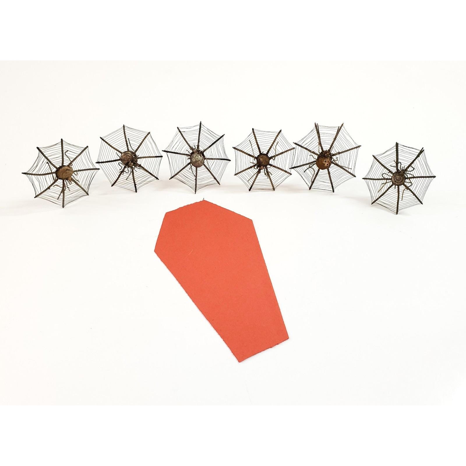 Overall good antique condition with minor wear, please see all photos close up for exact details. Three have clips to hold the card behind the web, the others hold the card with the spiders legs. Measures approx. 2" x 2" Includes a paper template to make your own coffin cards.