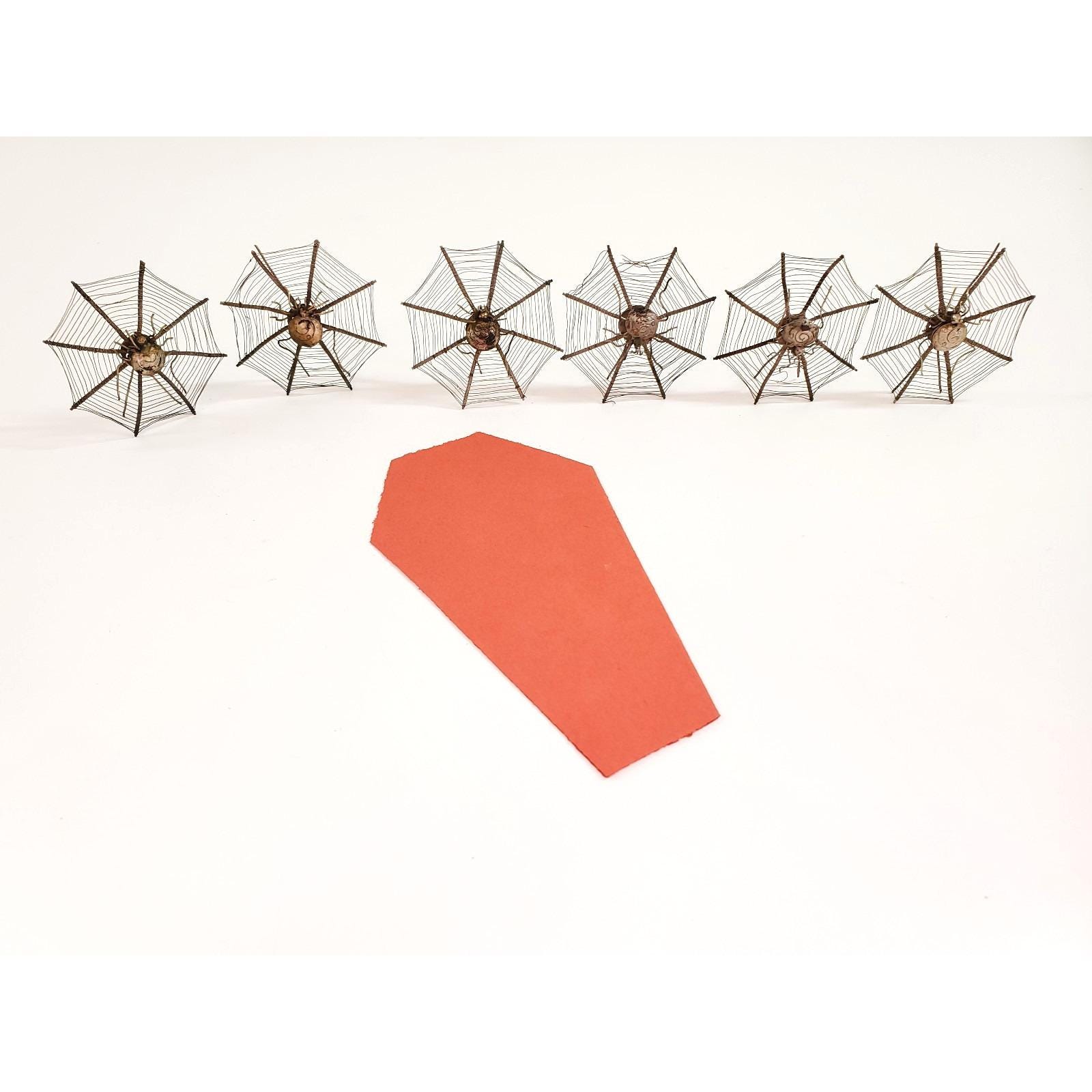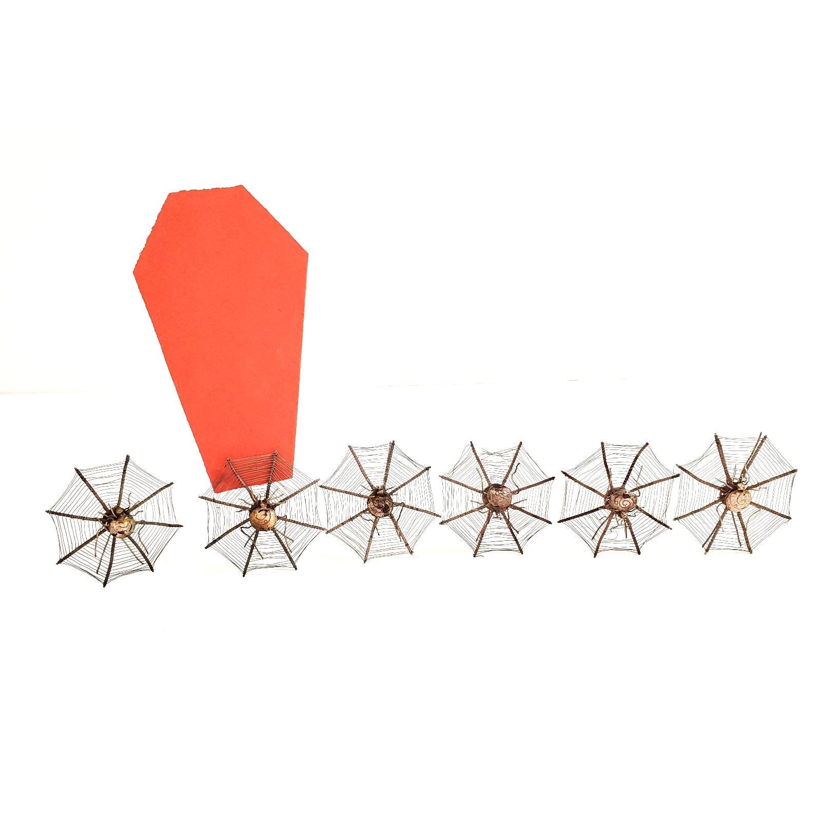 Overall good antique condition with minor wear, please see all photos close up for exact details. All six have clips to hold the card behind the web. Measures approx. 2" x 2" Includes a paper template to make your own coffin cards.
