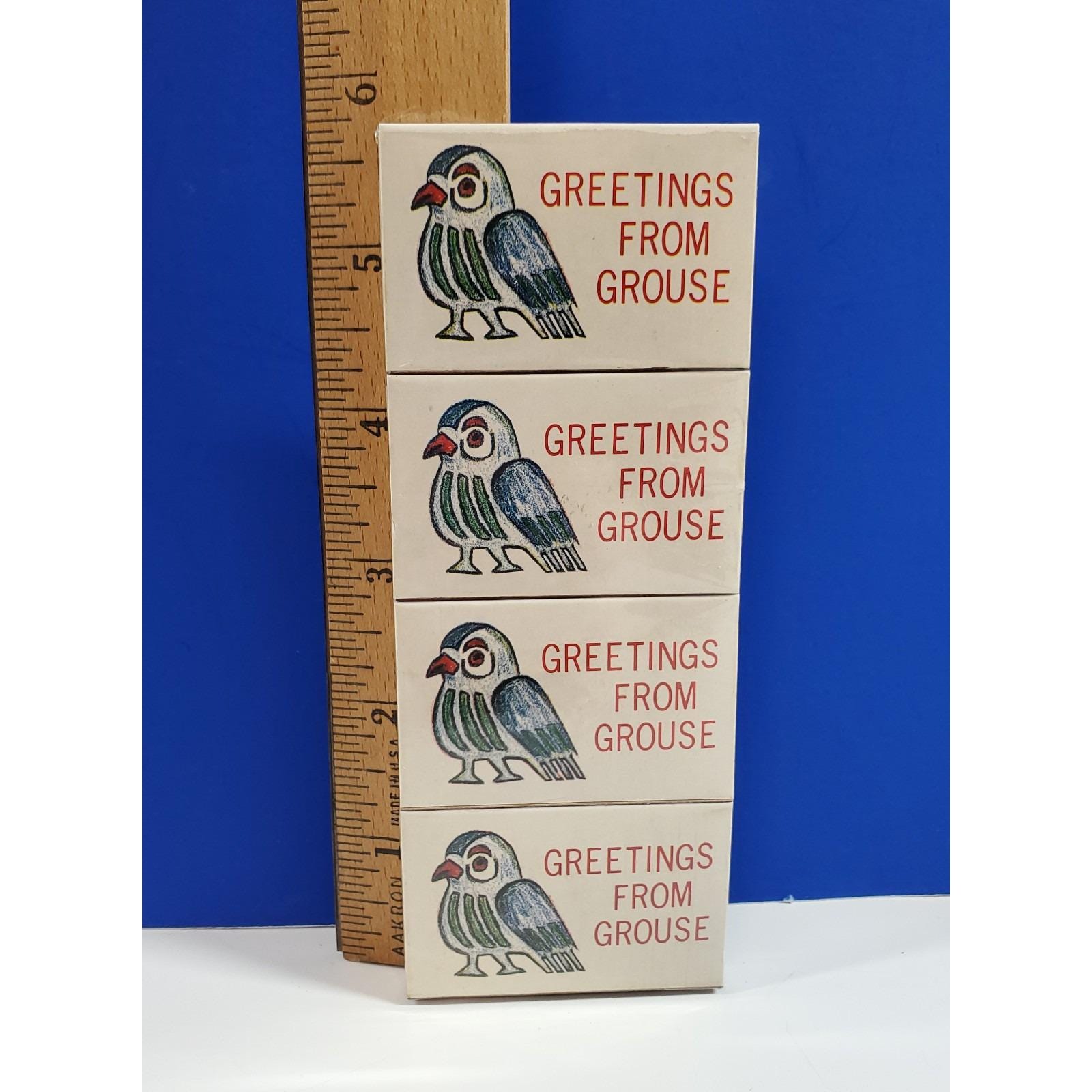 "Greetings from Grouse" Vintage New Old Stock advertising matchbooks sealed. Made in Japan.Please see all photos close-up for exact details.