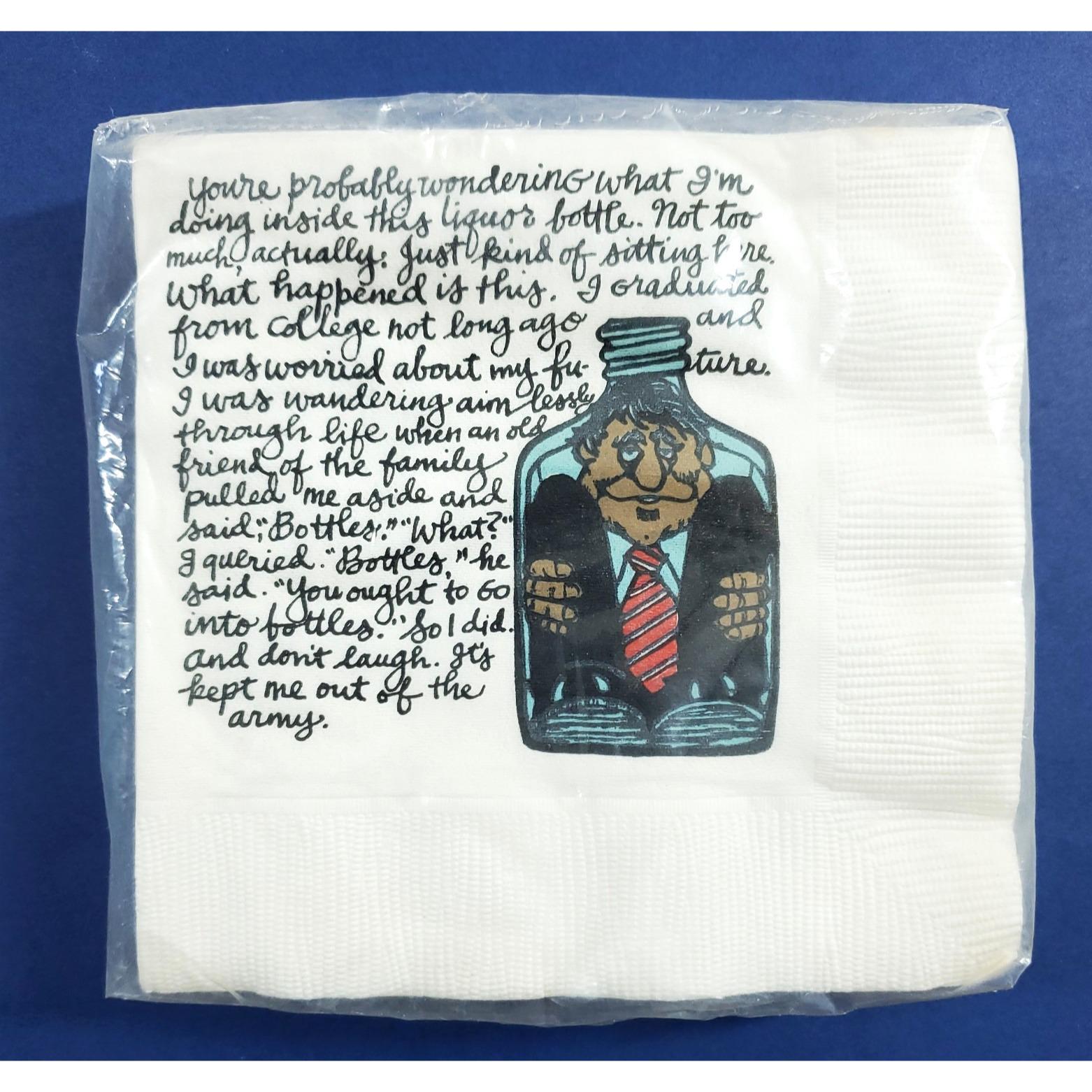 "You're probably wondering what I'm doing inside this liquor bottle. Not too much actually,