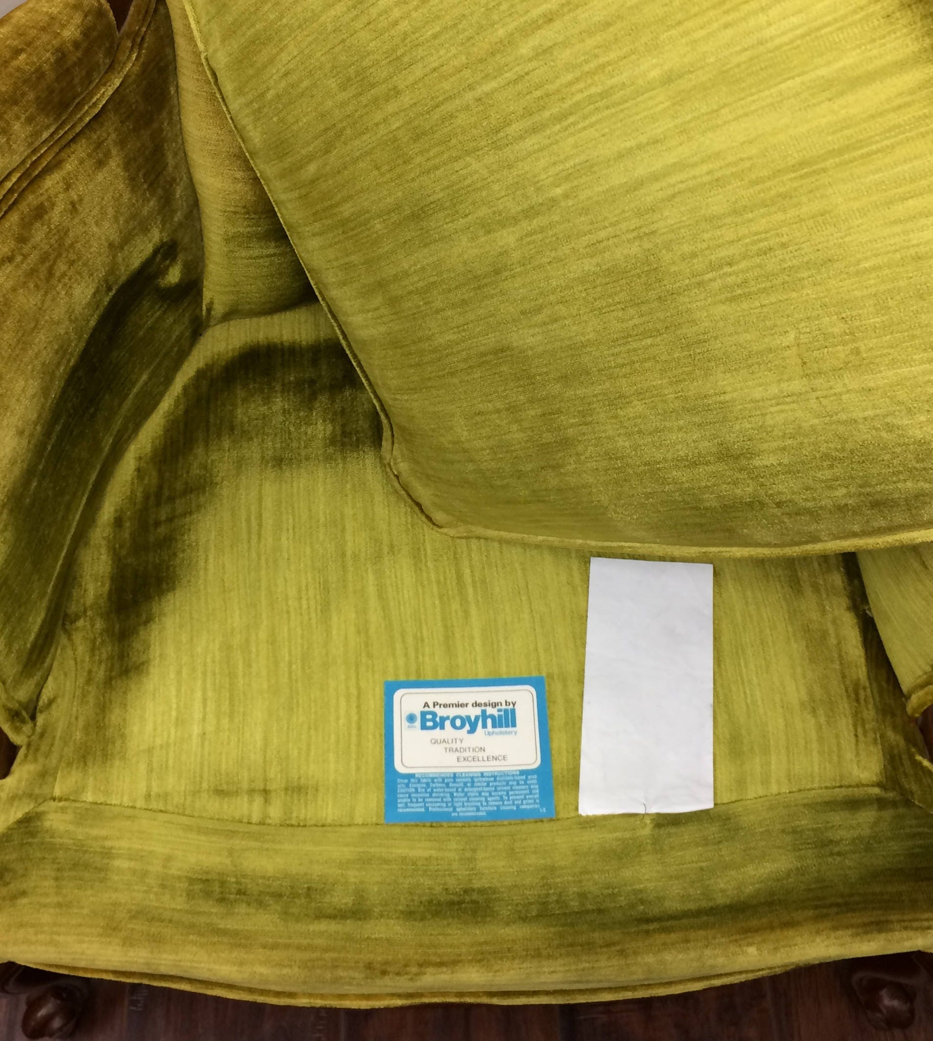 Vintage Broyhill Olive Green Crushed Velvet Tufted High Back Armchair